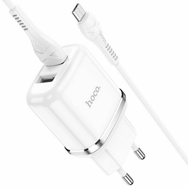Зарядки для гаджетов Сетевое зарядное устройство N4, 2 USB - 2.4 А, кабель microUSB 1 м, белый