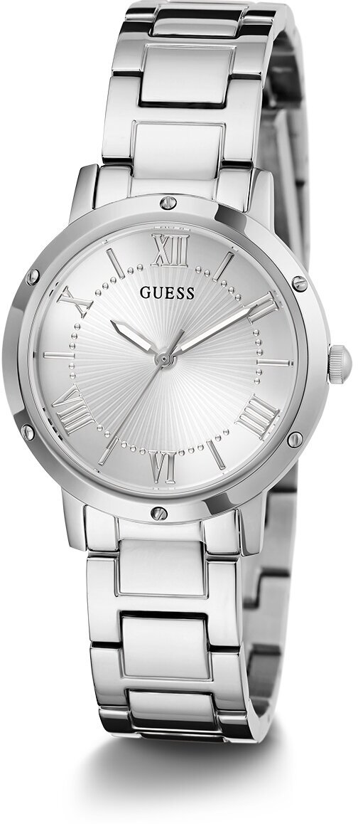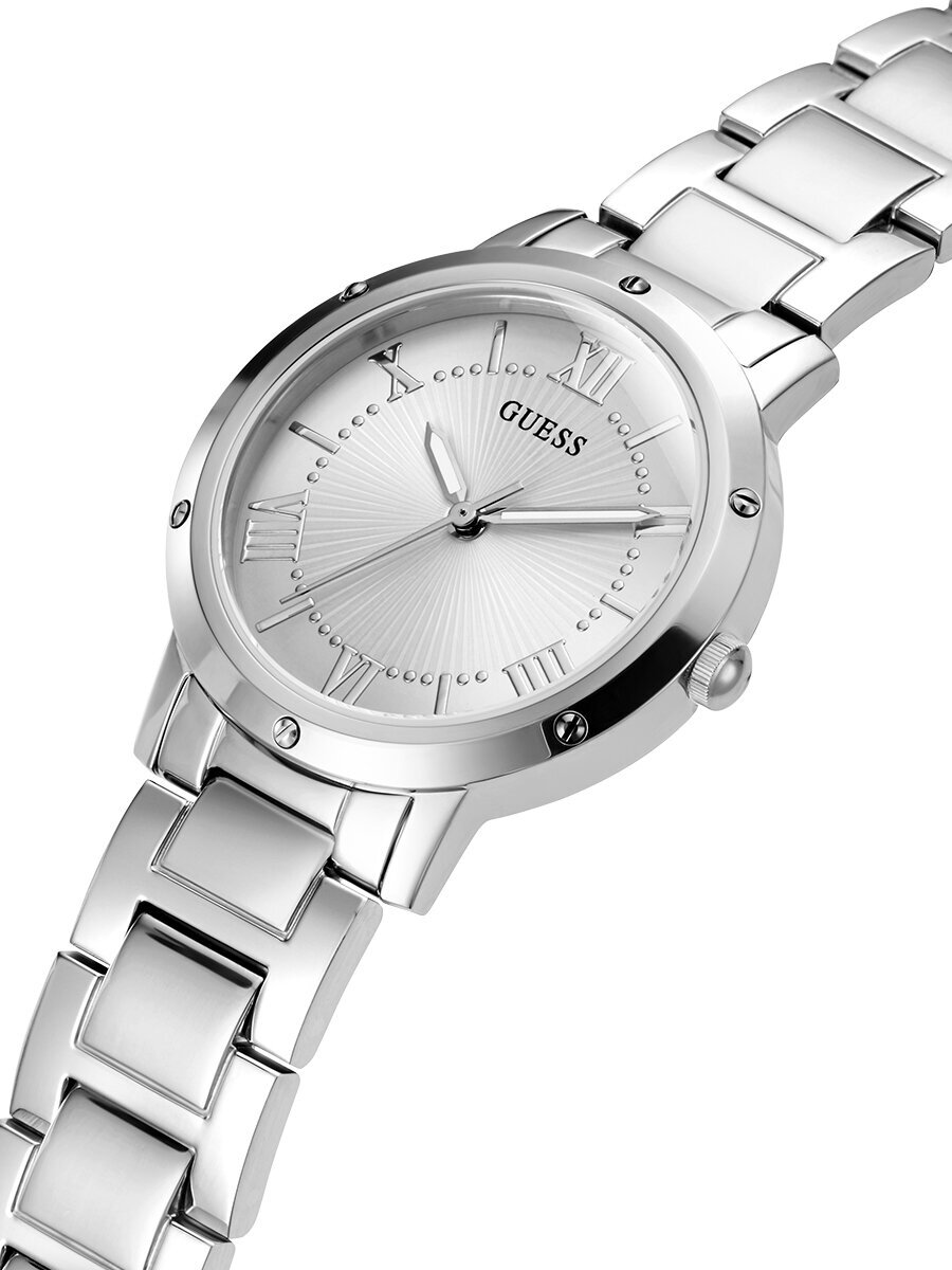 Лучшие цены. Женские наручные часы GUESS от единственного официального дистрибьютора данной марки часов на территории РФ. (О нас можно найти информацию на официальном американском сайте часов GUESS, как о единственном дистрибьюторе). Длина крепления на руку до 18,5 см легко регулируется либо в мастерской, либо самостоятельно. В комплекте к устройству идет паспорт формата 3 в 1: гарантия, инструкция и паспорт в одной книжке. Гарантия начинает действовать сразу после покупки часов. Магазины в вашем городе.