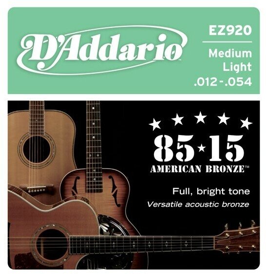 D'Addario EZ920 струны для акуст. гитары, бронза 85/15, Medium Light 12-54 1 111 ₽ Подробнее