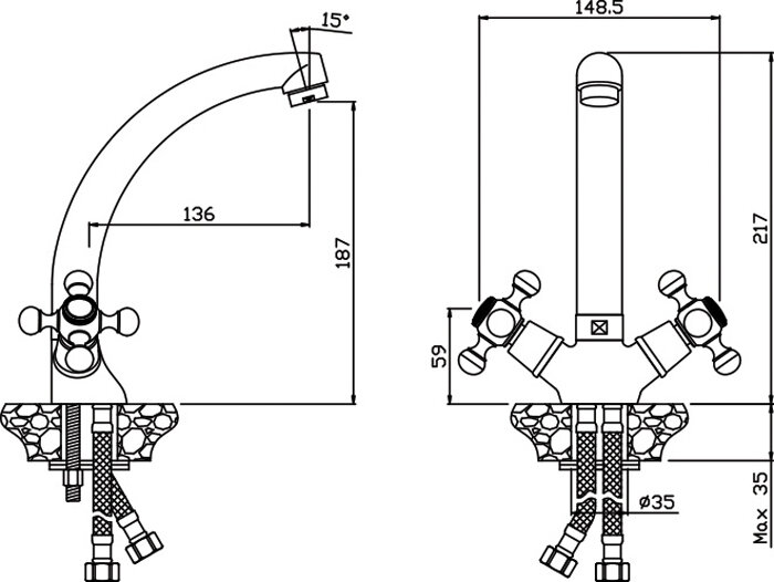 | Подвод воды | шланги / 350 мм / G 3/8" |