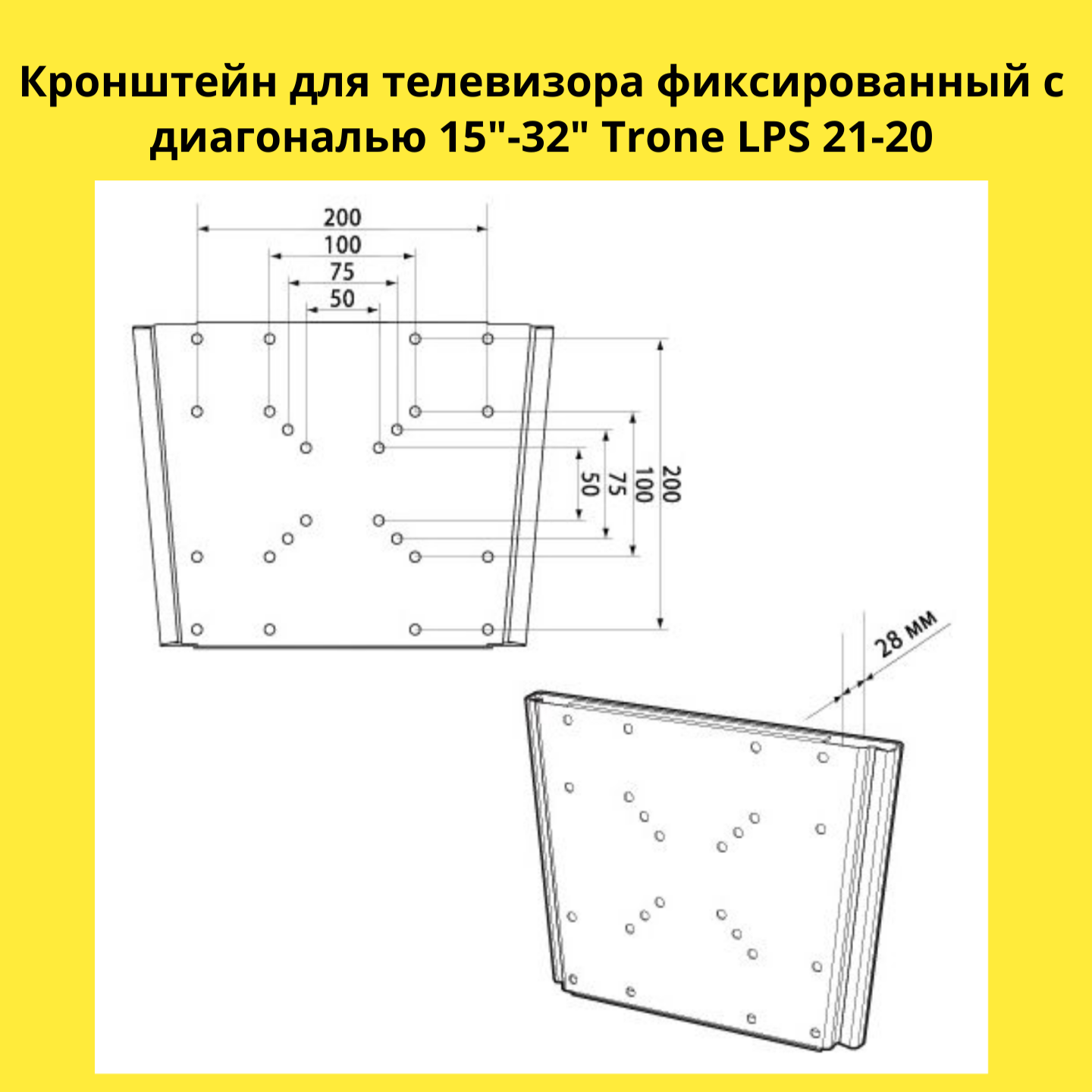 Лучшие цены. Кронштейн фиксированный ЖК 15..32 TRONE LPS 21-10 - это удобный настенный кронштейн, созданный специально для телевизоров. Кронштейн предназначен для крепления к стене LCD, LED, ЖК телевизоров с диагональю экрана 15..32 дюйма. Кронштейн имеет простую и надежную конструкцию, способную выдержать многокилограммовый телевизор. Кронштейн очень прост в установке, а при его использовании не требуется никаких дополнительных настроек. Универсальный цвет кронштейна TRONE LPS 21-10 отлично подойдет к любому интерьеру. Магазины в вашем городе.