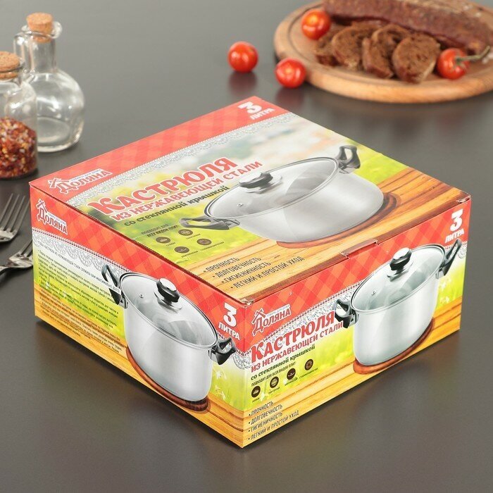 Кастрюля Доляна «Классика», 3 л, стеклянная крышка