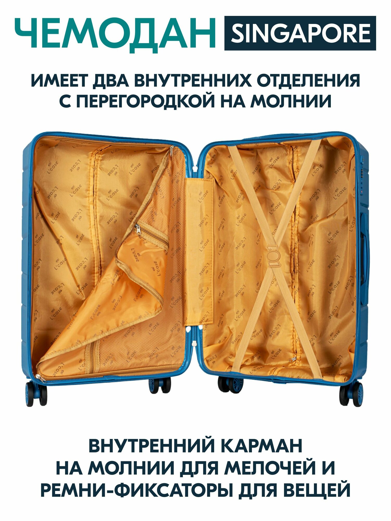 Чемоданы Чемодан на колесах Lcase Singapore, Синий. Маленький S. Дорожный чемодан на колесиках для путешествий и поездок.