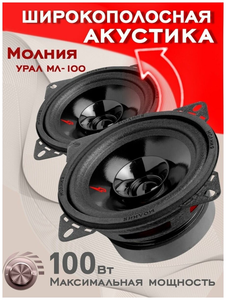 Колонки автомобильные Ural Молния АС-МЛ100 (без решетки) 100Вт 90дБ 4Ом 10см (4дюйм) (ком.:2кол.) широкополосные однополосные 1 826 ₽ Подробнее
