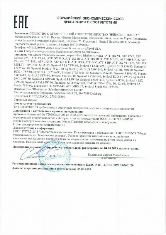 Swd Rheinol Atf Dsg (1Л) SWD Rheinol арт. 30633180
