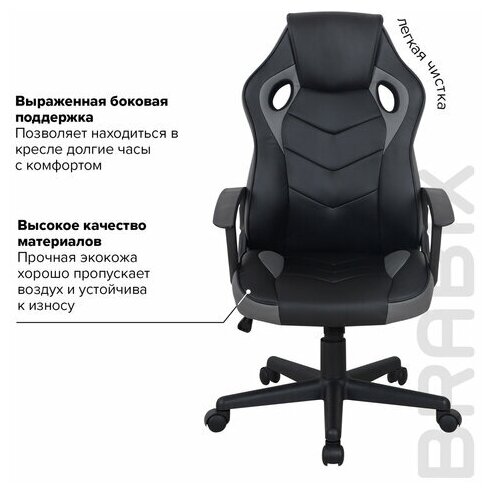 Компьютерные кресла Кресло компьютерное BRABIX "Fighter GM-008", экокожа, черное/серое, 532507 - 1 шт.