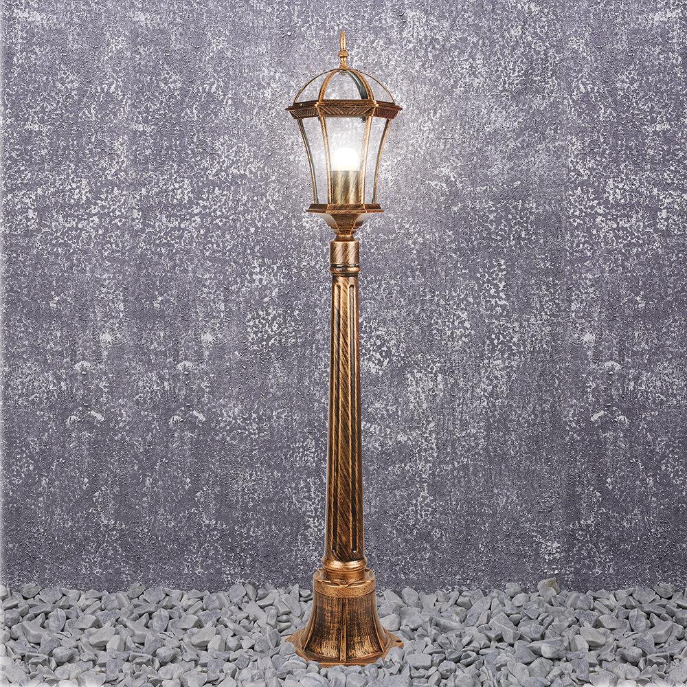Светильник садово-парковый, 60W 230V E27 205*180*1050мм черное золото PL626