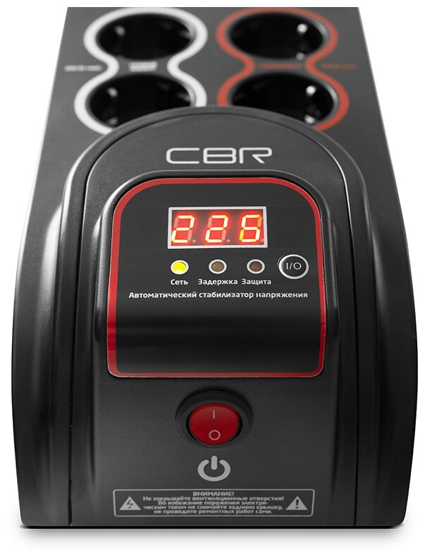 Cbr Сбр Стабилизатор напряжения CVR 0055, 500 ВА 250 Вт, диапазон вход. напряж. 150–275 В, точность стабилизации 10%, LED-индикация, вольтметр, 4 евророзетки, корпус пластик