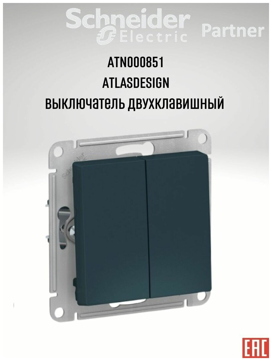 Выключатели Выключатель 2-кл. СП AtlasDesign 10А IP20 (сх. 5) 10AX механизм изумруд | код ATN000851 | Schneider Electric (10шт.в упак.)