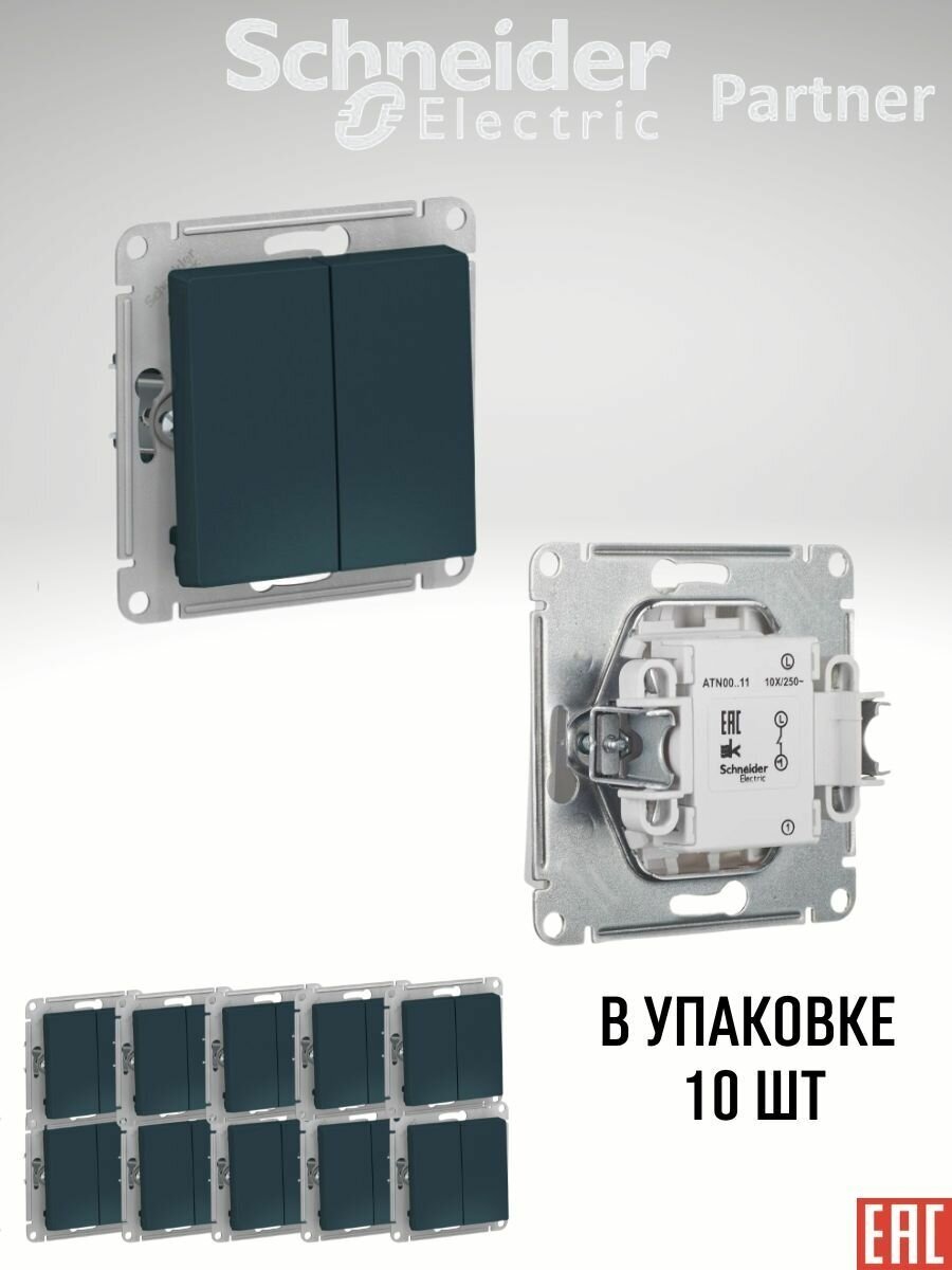 Переключатель двухклавишный изумруд сх.6, 10АХ, механизм Schneider Electric AtlasDesign (комплект 6шт)