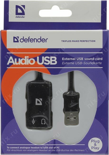 Внешняя USB звуковая карта Defender Audio USB USB - 2х3,5 мм jack, 0.1 м