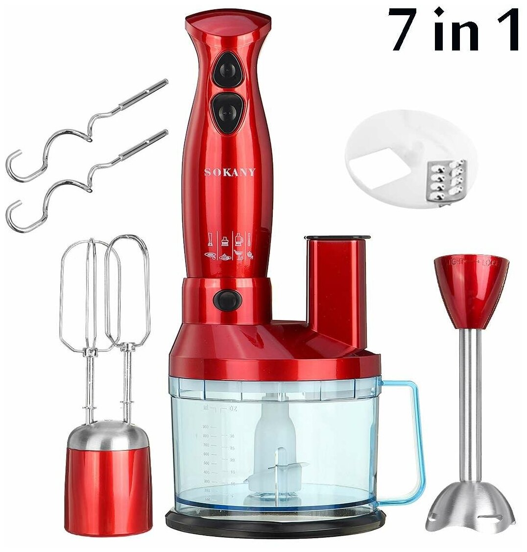 Кухонный комбайн SOKANY 5011-7/погружной блендер/ Мощность 700 Вт/7 в 1/ красный