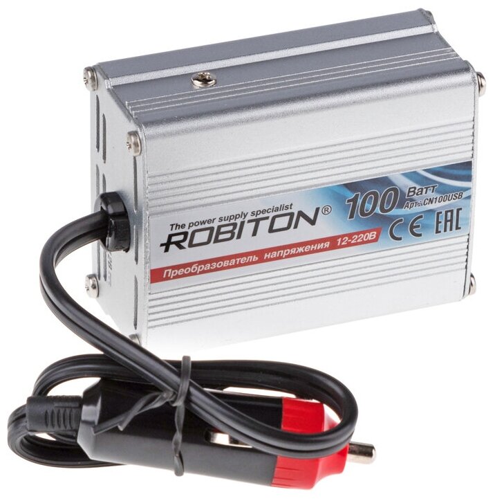 Лучшие цены. Автомобильный инвертор ROBITON CN100USB мощностью 100 Ватт предназначен для преобразования постоянного напряжения 12В автомобильного аккумулятора в 220-240В переменного напряжения. Данное устройство позволяет работать в автомобиле различным бытовым электроприборам, таким как ноутбук, радио, зарядные устройства, а также различный инструмент. Наличие USB разъема обеспечивает дополнительные возможности использования устройства. Магазины в вашем городе.