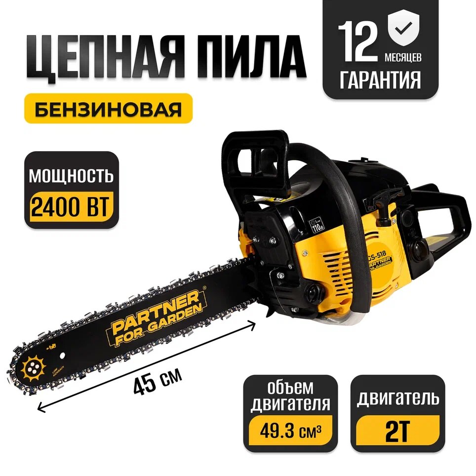 Бензиновая пила Partner for garden GS-518 2.4 кВт; 3.5 л.с; 45 см