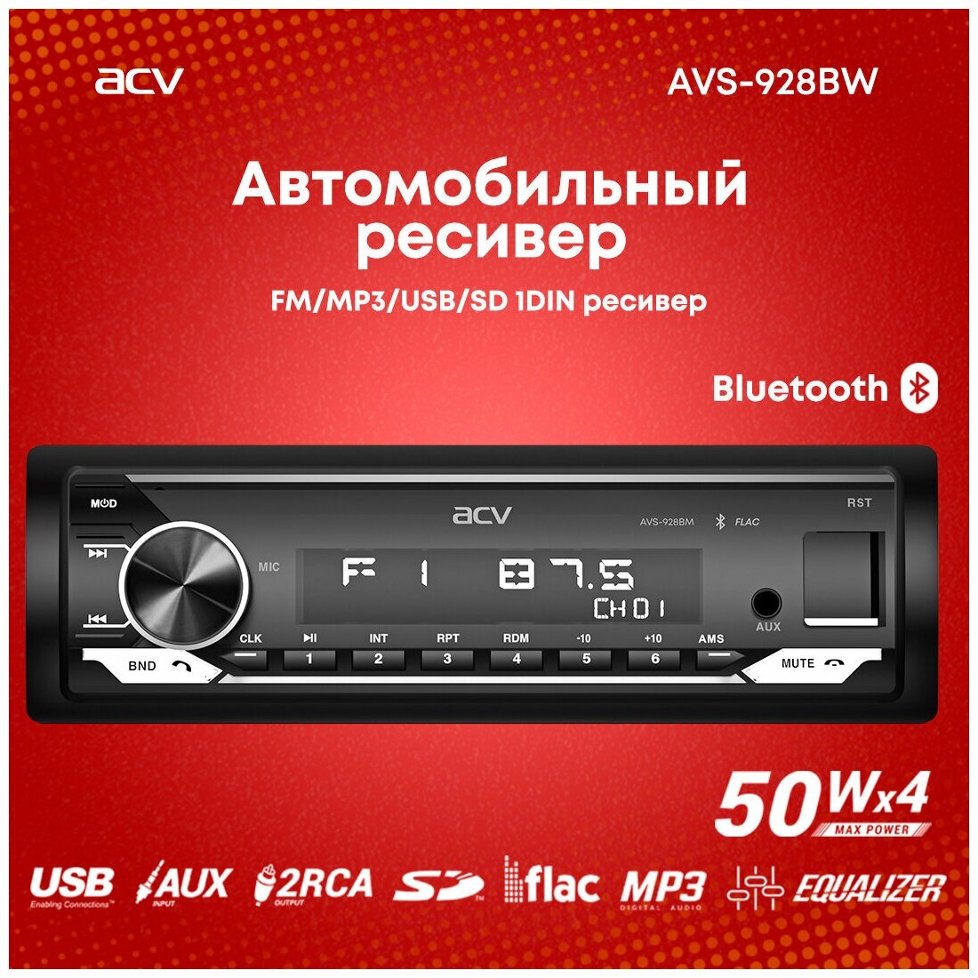 Автомобильный ресивер с Bluetooth, поддержкой ACV RC и ACV Control, белая подсветка ACV AVS-928BW