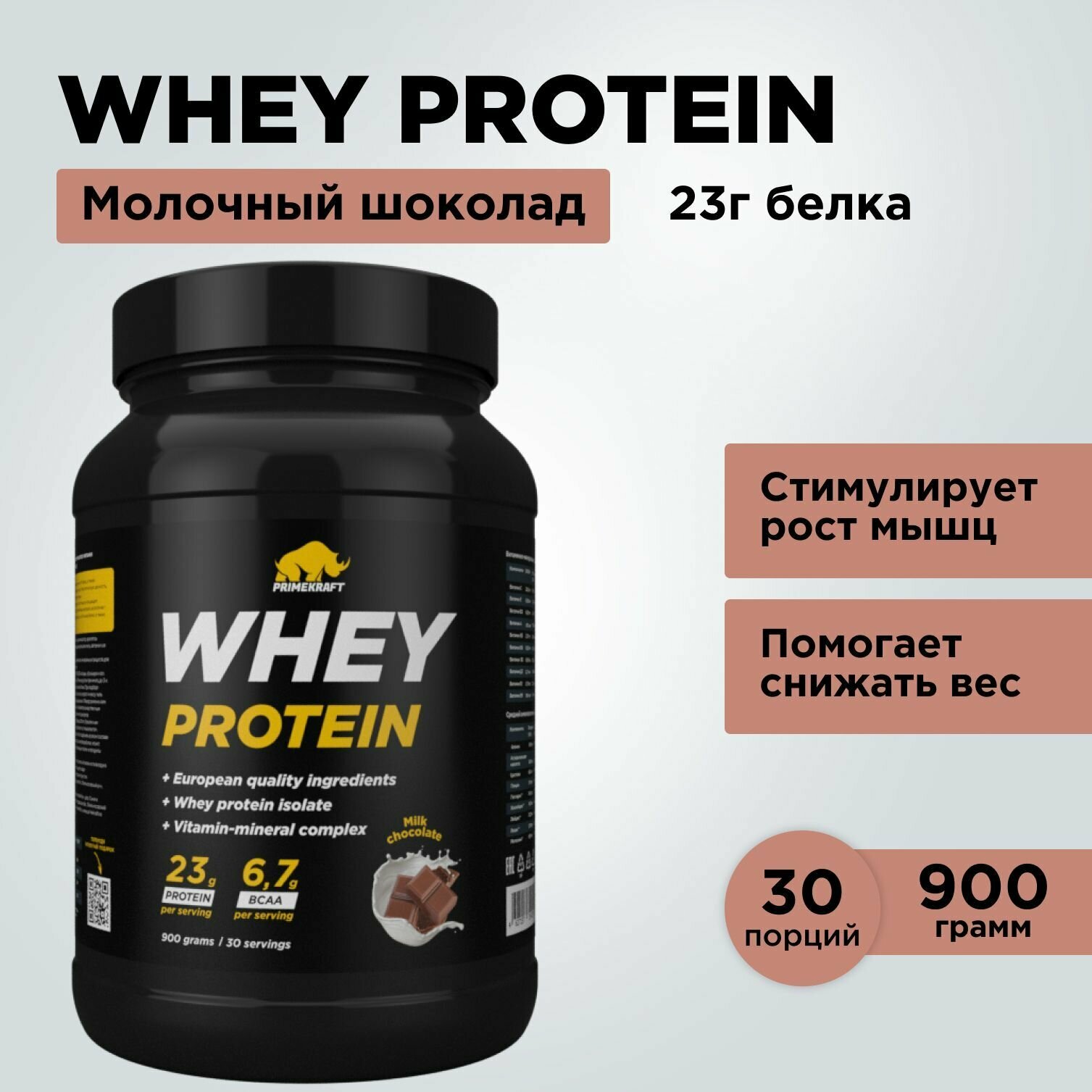 Протеины Prime Kraft Whey банка (900 гр.) Молочный шоколад