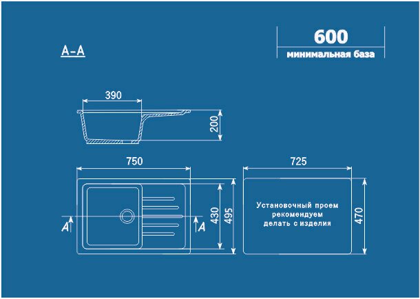 Мойка Ulgran, мрамор, U-400-309, (750*495*200 мм), темно-серый, сифон и сливная арматура 8 159 ₽ Подробнее