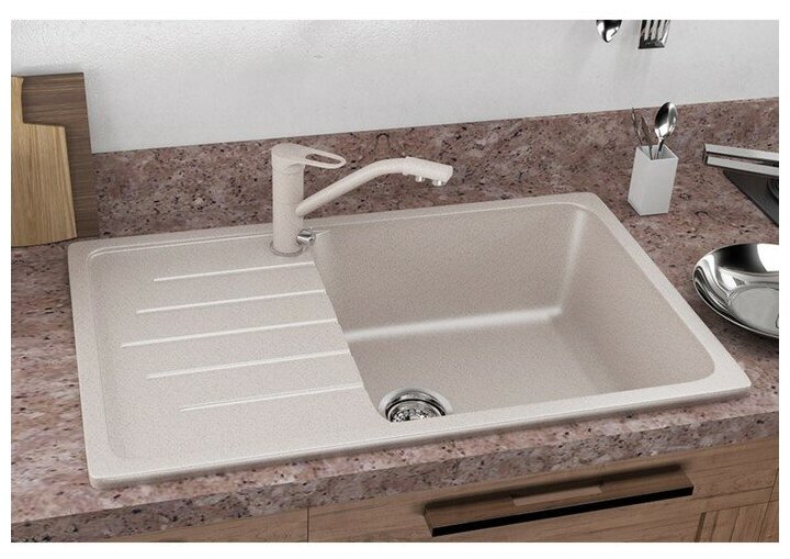 Лучшие цены. Кухонная мойка Ulgran U-400-302. Цвет: песочный. Станет отличным функциональным решением для обустройства рабочего пространства на кухне. Характеристики: - Форма: прямоугольная. - Мойка изготовлена из искусственного мрамора (мраморная крошка - 80%, акриловая смола - 20%). - Материал обладает высокой механической прочностью, вибростойкостью и отличными шумопоглощающими свойствами. При мытье посуды практически отсутствует шум воды. Гарантировано высокое качество и максимальный комфорт при эксплуатации. Магазины в вашем городе.