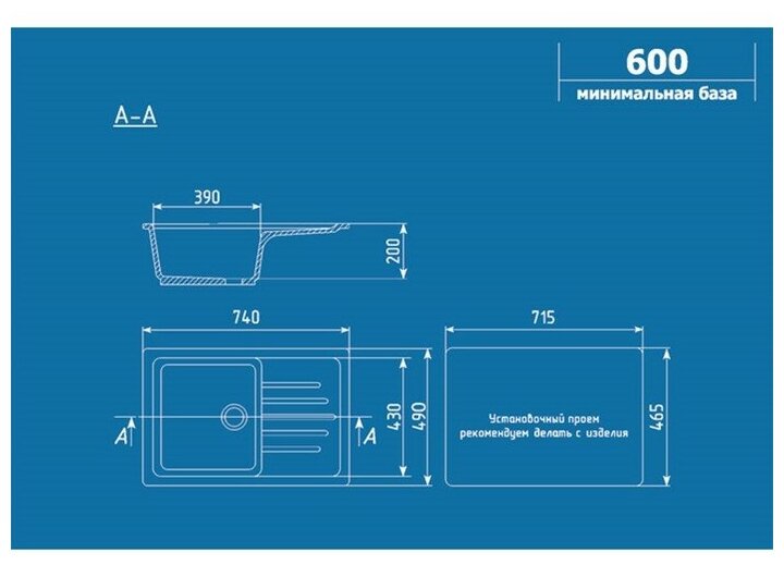 Мойка Ulgran, мрамор, U-400-309, (750*495*200 мм), темно-серый, сифон и сливная арматура