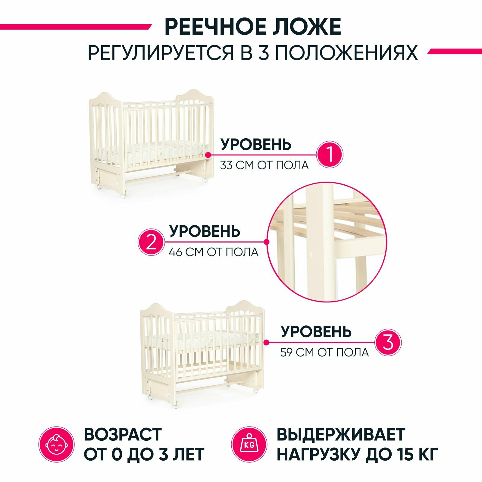 Лучшие цены. Bebizaro Детская кровать Fillmore – с универсальным маятником. Это функциональная кроватка, продуманная до мелочей, это максимальный комфорт и безопасность для вашего малыша. Каркас кроватки выполнен из массива берёзы. Для удобства родителям, боковая стенка кроватки регулируется по высоте. Модель оборудована колесами для её перемещения по комнате. Особенности: каркас кроватки выполнен из массива берёзы опускаемая стенка регулируется по высоте три уровня ортопедического основания по высоте кроватка подходит. Магазины в вашем городе.
