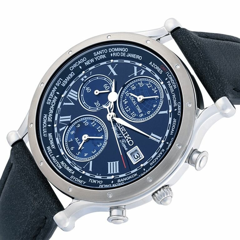 Лучшие цены. Секундная стрелка вынесена на отдельный циферблат. Мировое время в 24-х часовом формате времени. Завинчивающаяся задняя крышка. Минеральное стекло Hardlex повышенной прочности. Гарантия 2 года. Функции: Будильник. Второй часовой пояс. Число. Комплектация: Часы, фирменная упаковка, фирменный пакет, инструкция на русском языке, заполненный гарантийный талон с международной гарантией. Магазины в вашем городе.