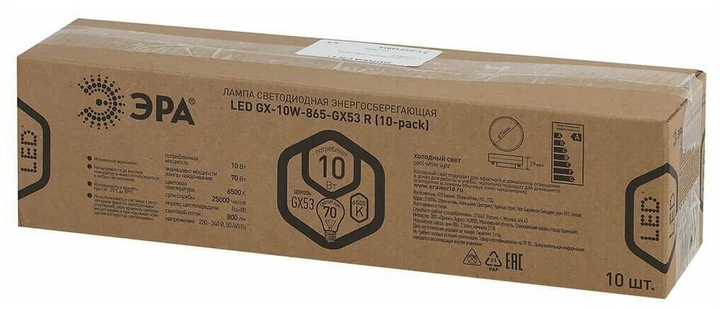 Светодиодная лампа Эра GX53, 10W, 6500K,10шт