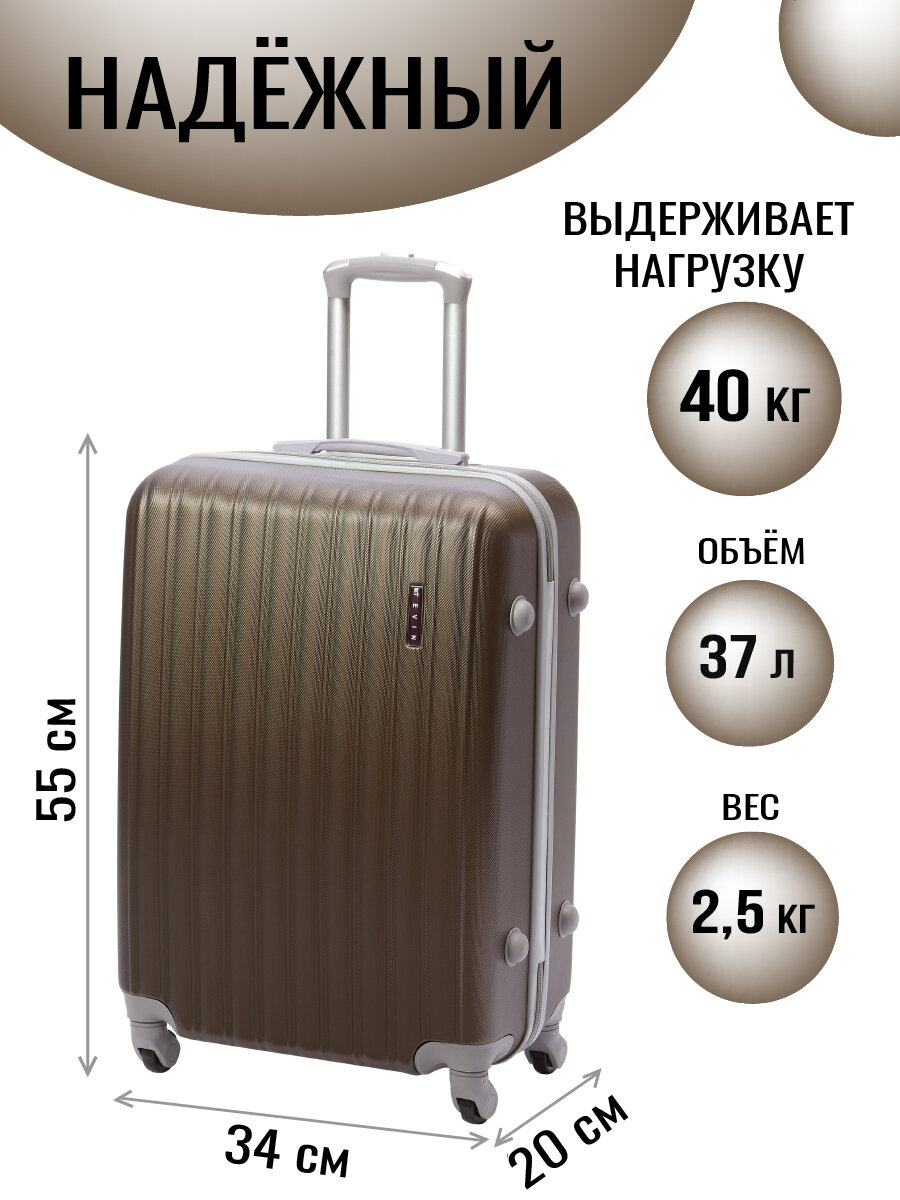 Чемодан на колесах дорожный ручная кладь в самолет s TEVIN размер С маленький 55х40х20 ручной 21" легкий 2.5 кг прочный abs (абс) пластик Коричневый