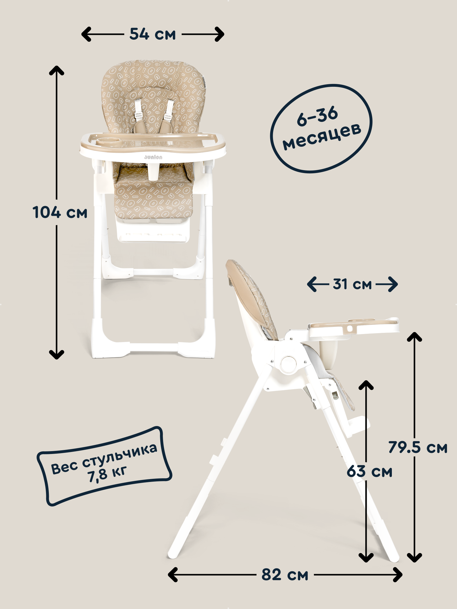 Стульчики для кормления Детский стульчик для кормления JUNION Pump, бежевый