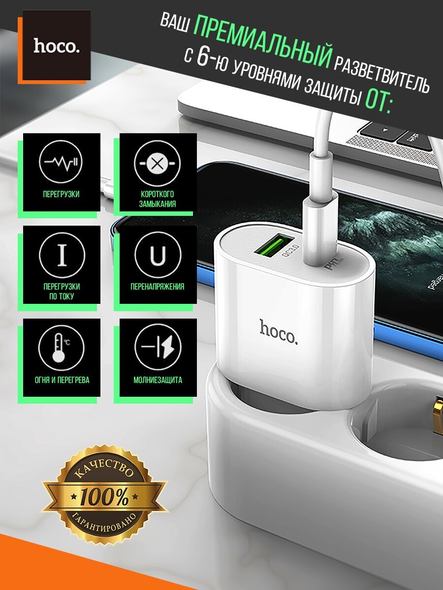 Быстрая зарядка Type-C и USB hoco / Хоко зарядка для iphone, на андроид, на айфон Type C / Сетевое зарядное устройство для телефона тип с / 2 гнезда