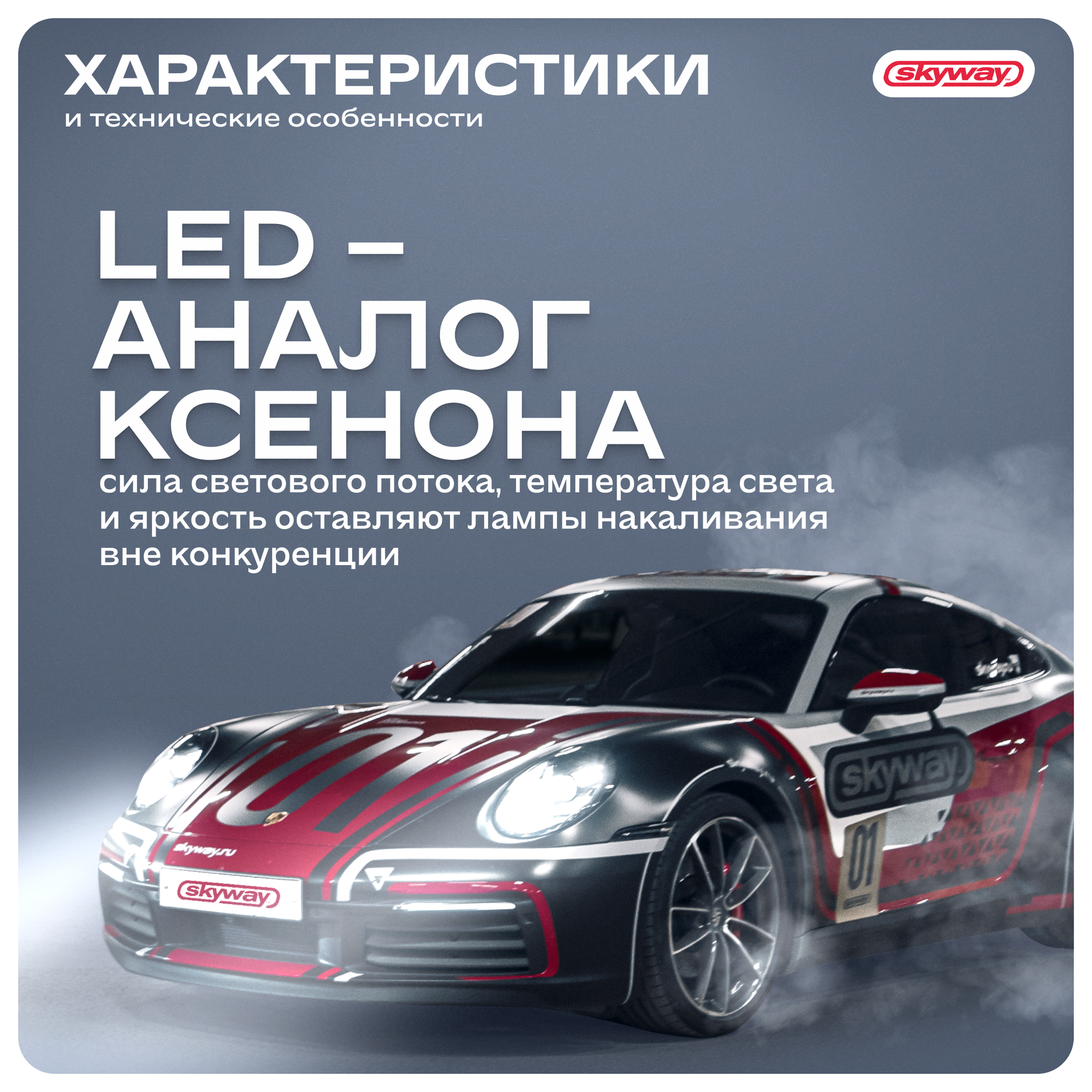 Лампа Светодиодная H4 12V/24V 26W 6000К "Skyway" (1500Lm, 1Конт, Led) (2 Шт.) Skyway арт. S08701010