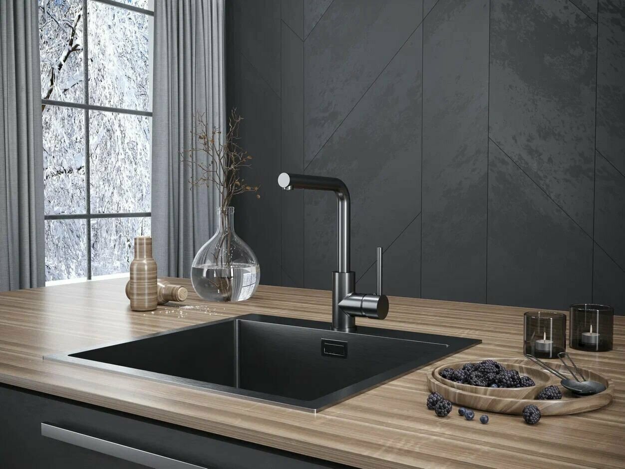 Смеситель для кухни (мойки) Paulmark Honner, Ho212018-GM, вороненая сталь, однорычажный, поворотный излив, аэратор 18 900 ₽ Подробнее