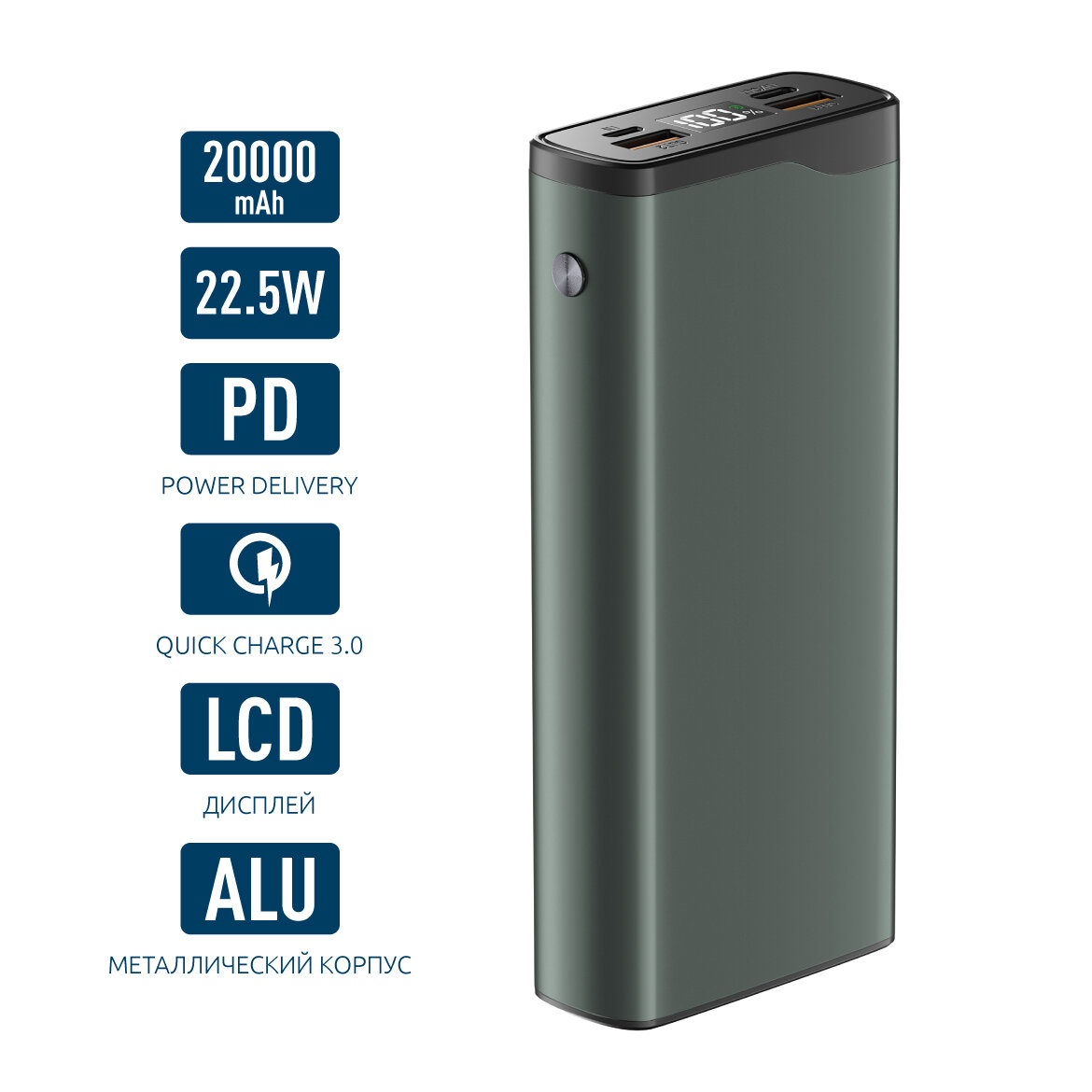 Внешний аккумулятор QL-20/ 20000mAh/ 22.5W/ Power bank QuickCharge3.0 / PowerDelivery/ LCD/ серый