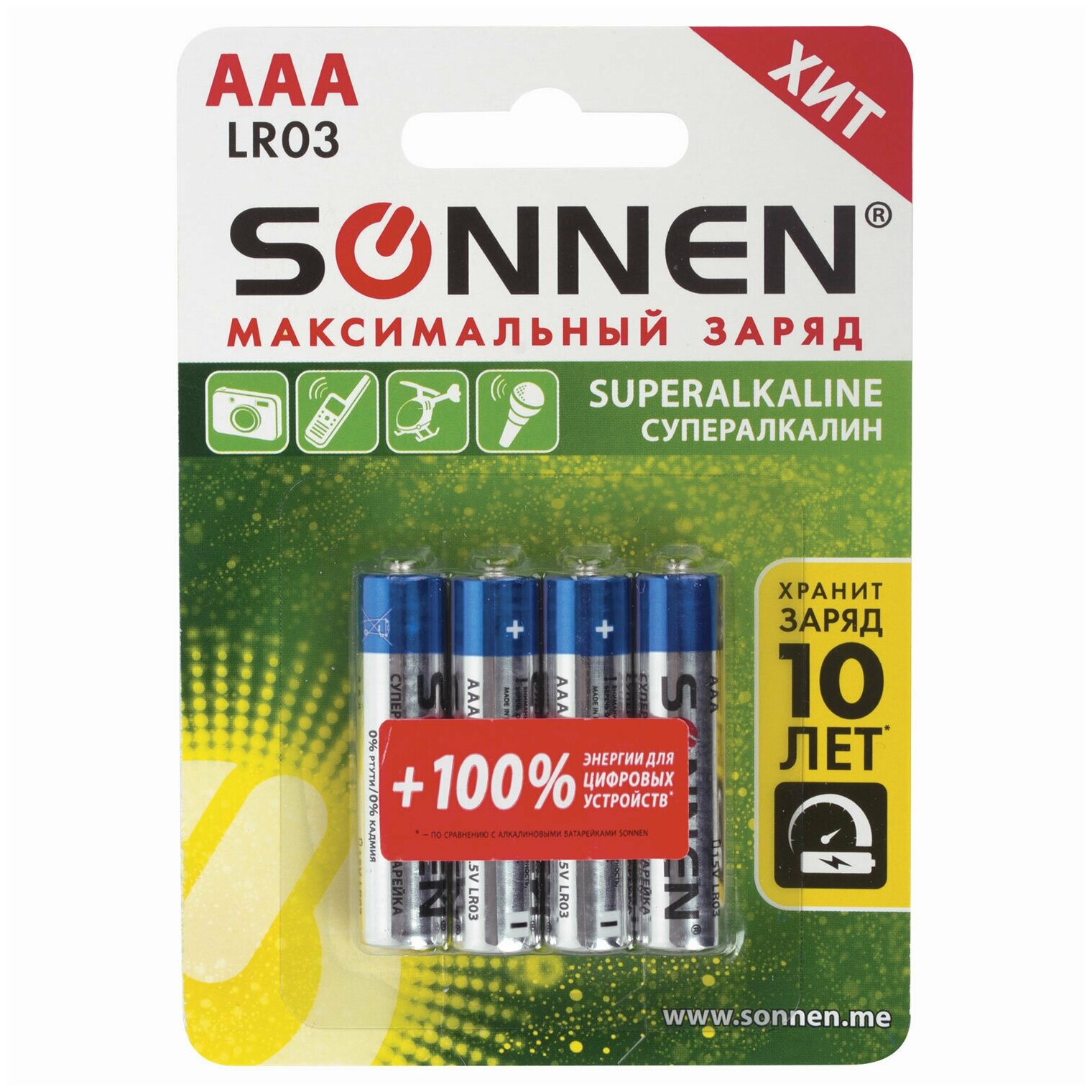 Батарейки SONNEN Super Alkaline, AAA алкалиновые, 4 шт., в блистере, 451096