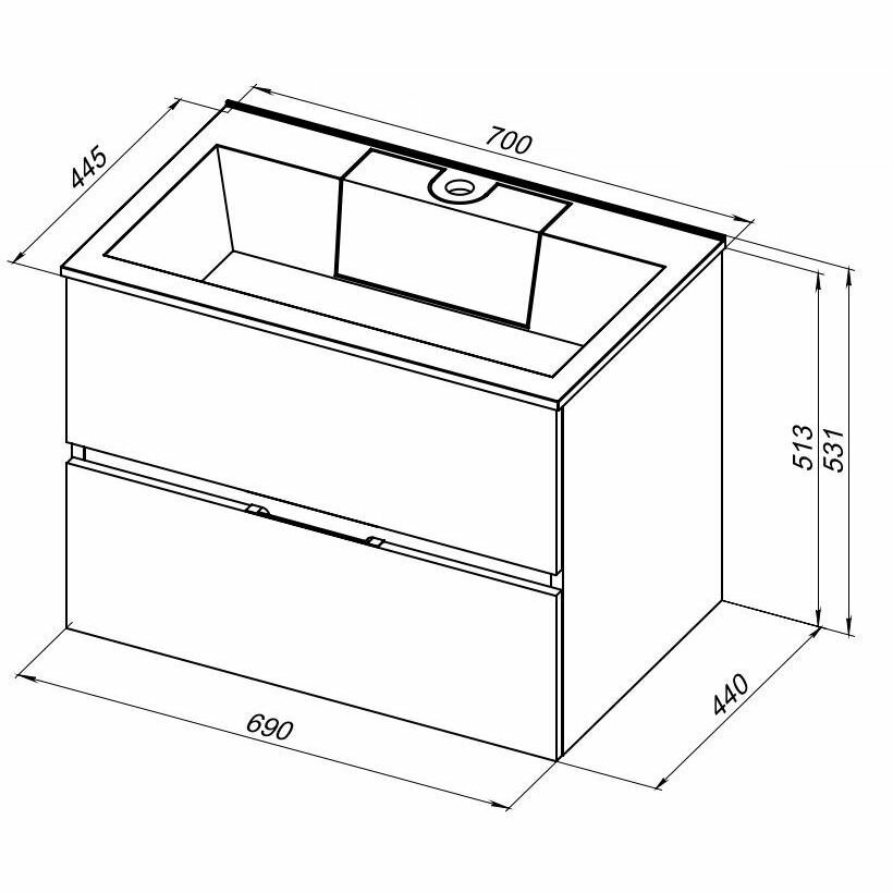 Тумба без раковины (комод) AQUANET Алвита 00184302, подвесной, 690х531х445 мм, белый