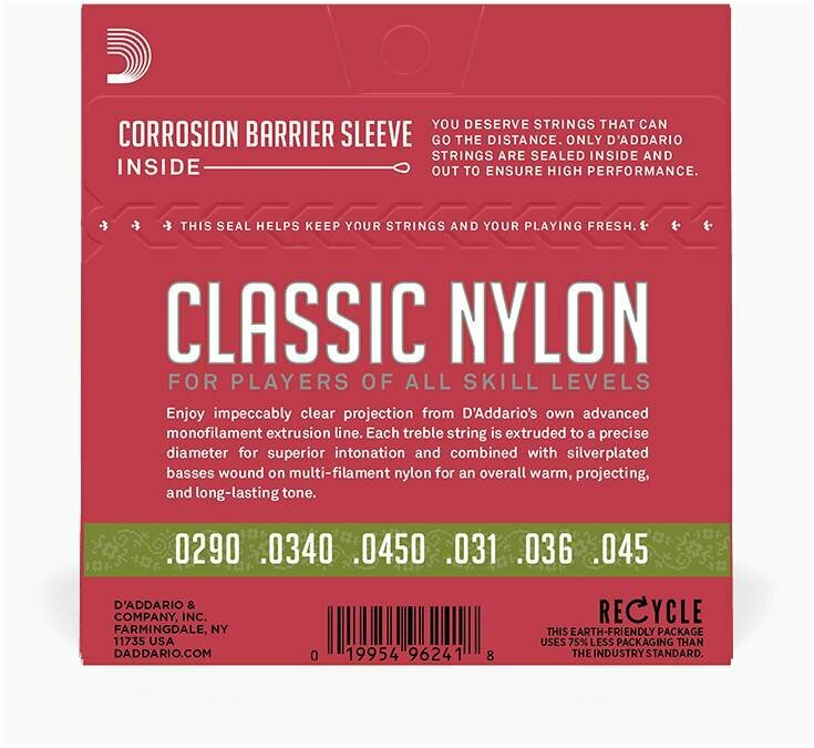 Лучшие цены. Струны для классической гитары размером 1/2 с прозрачными нейлоновыми верхами и басами на нейлоновой основе с посеребренной медной обмоткой Струны для классической гитары размером 1/2Три верхних струны из прозрачного литого нейлонаТри басовых струны на нейлоновой многожильной основе с посеребренной медной обмоткойРасчетная мензура 22.12 дюйма (562 мм)Струна ми/1 толщиной .029 дюйма (.74 мм) натяжением 13.09 фунта (5.94 кг)Струна си/2 толщиной .034 дюйма (.86 мм) натяжением 10.10 фунта (4.58 кг). Магазины в вашем городе.