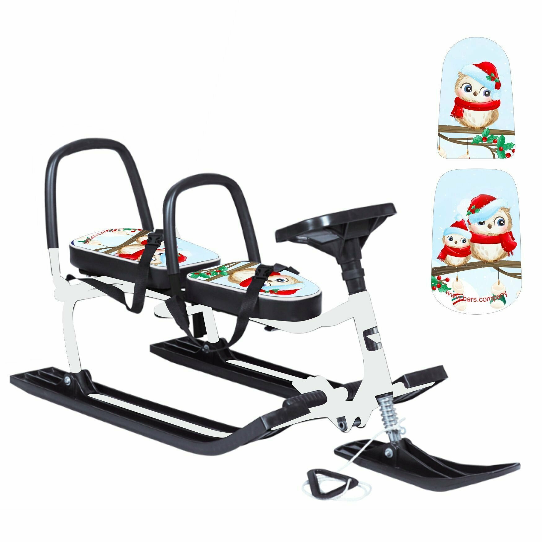 Снегокат Барс "Twins Baby", Совы карнавал, детский, для двоих, с двумя складными спинками