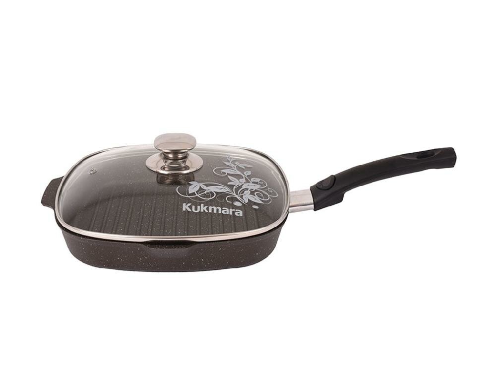 Сковородка Сковорода-гриль для индукции квадратная Kukmara Кукмара Marble Induction 28/28см со съемной ручкой Антиприганое покрытие Кофейный Мрамор сгкмки281а