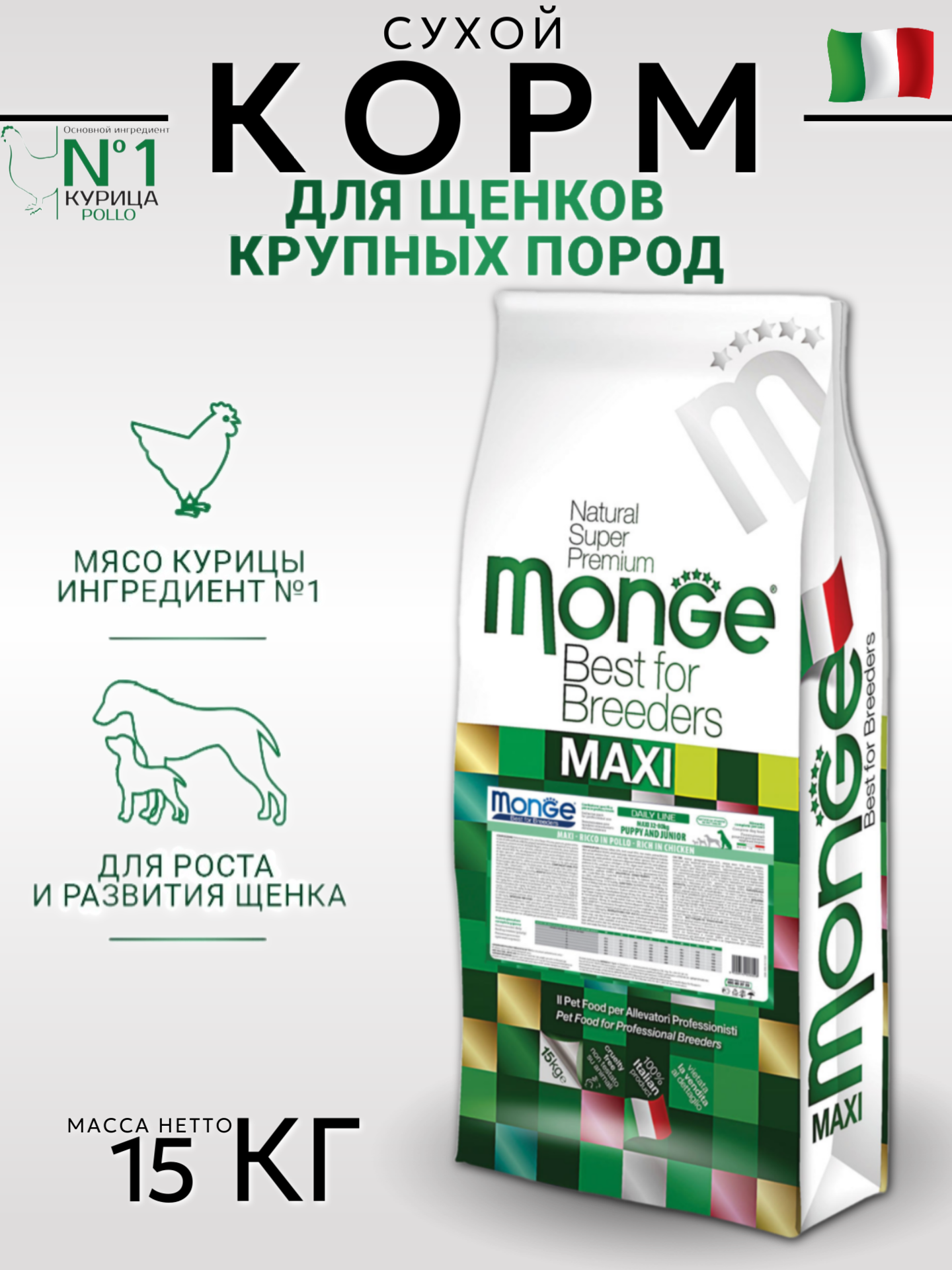Сухой корм MONGE DOG MAXI PUPPY & JUNIOR CHICKEN для щенков крупных пород с курицей (12 кг)