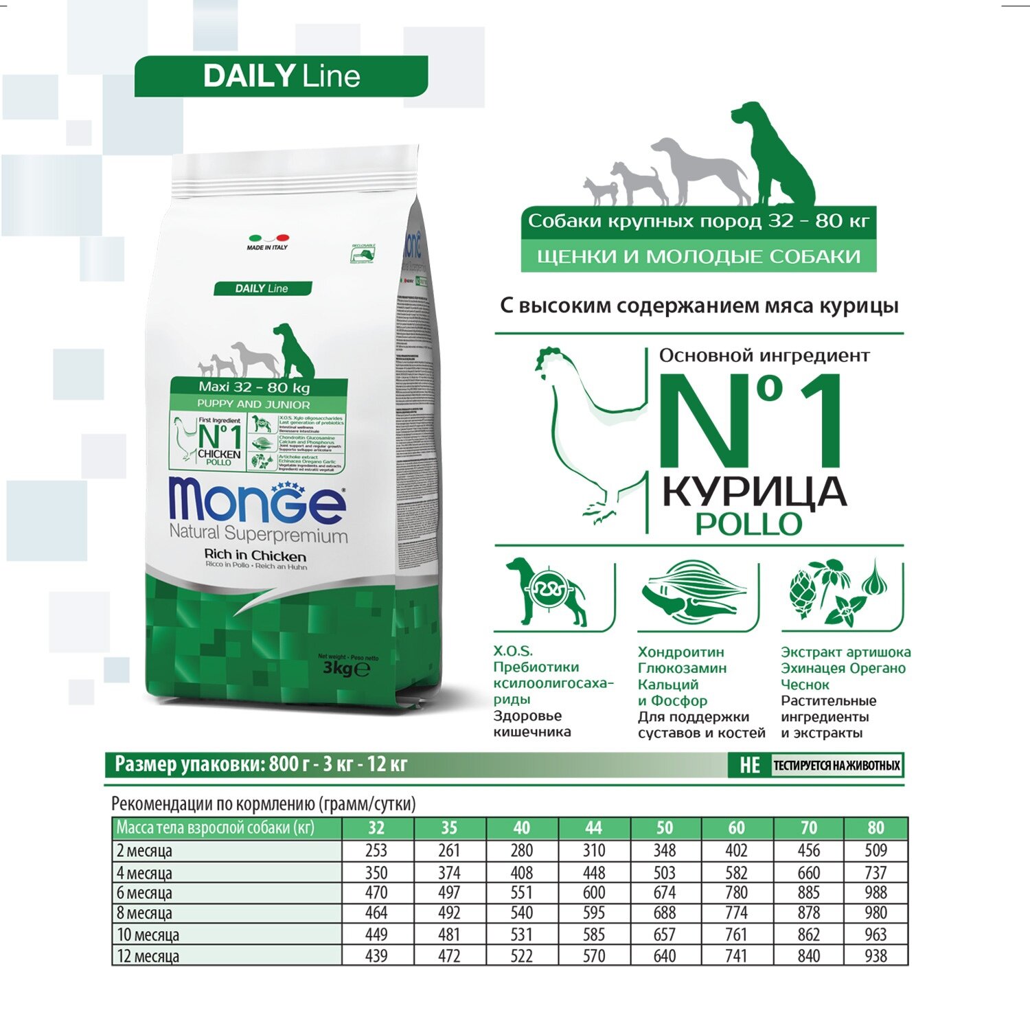 Сухой корм для щенков крупных пород Monge Daily Line Puppy and Junior Maxi с курицей 12 кг (Вес упаковки, кг: 12)