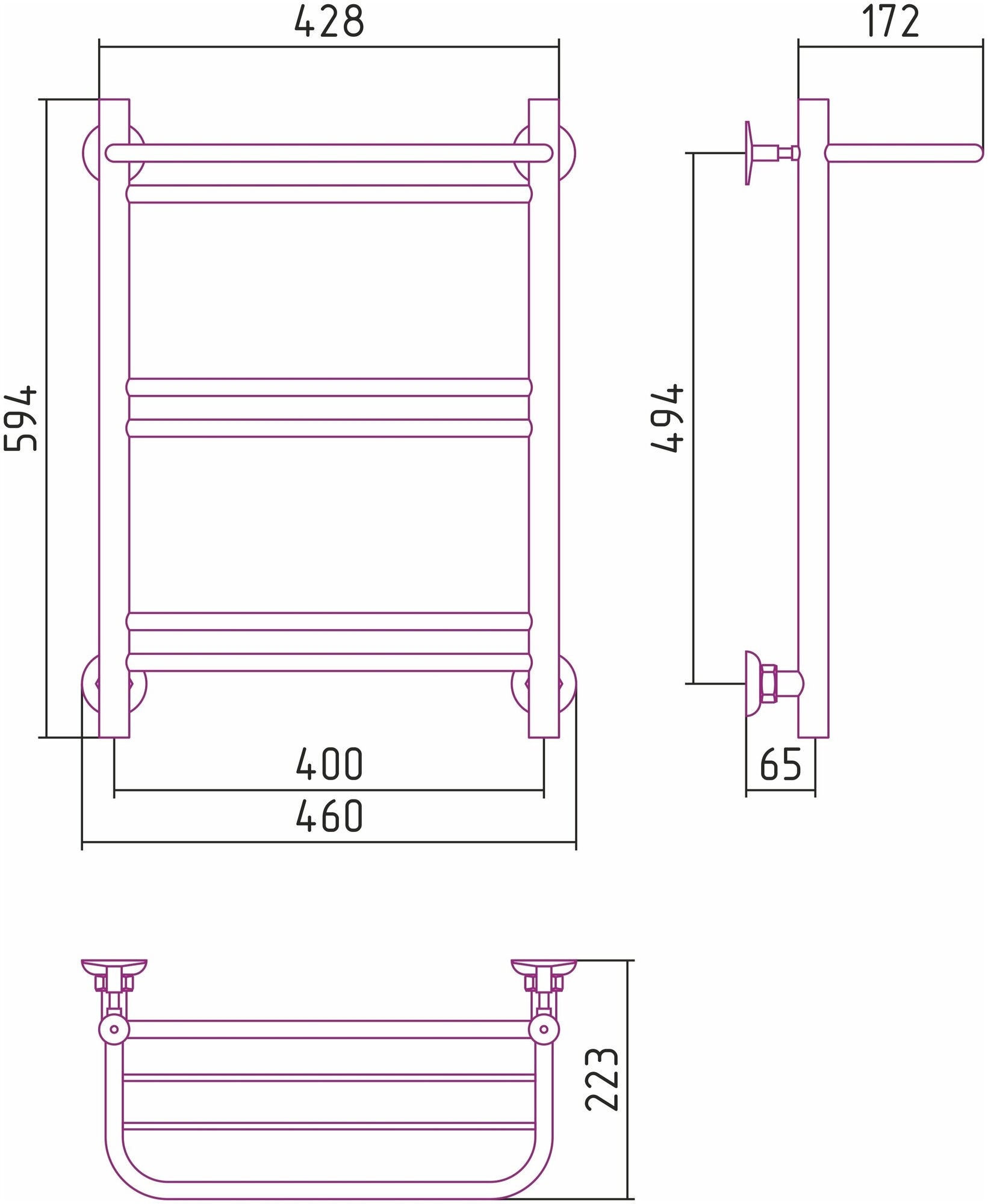 Полотенцесушитель водяной Стилье Версия-Н1 600х400 (Полка+1+2+2) П16 черный арт. 17621-6040