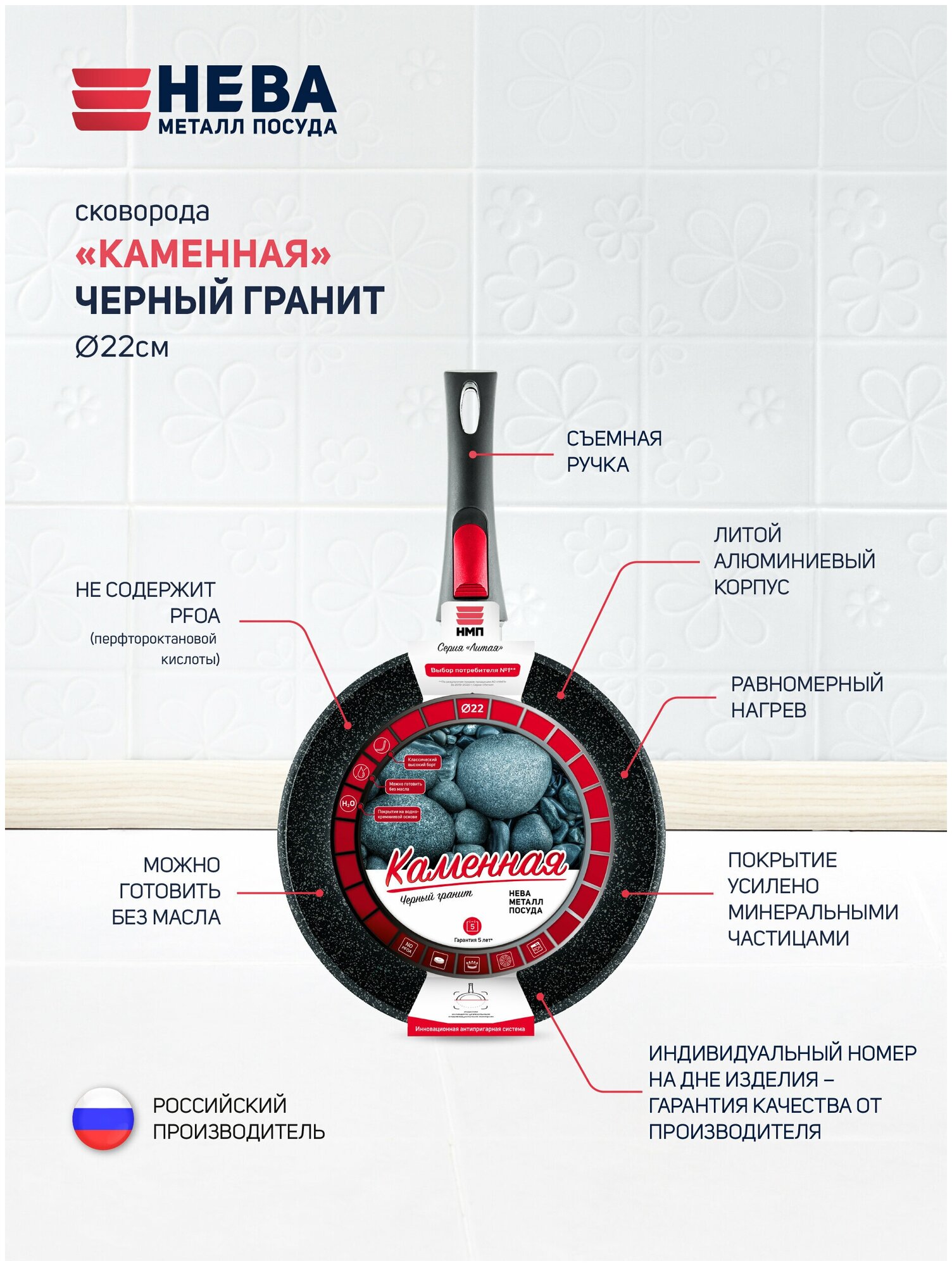 Сковородка Сковорода НМП 22 "Каменная" Чёрный гранит съемная ручка, 18022 .