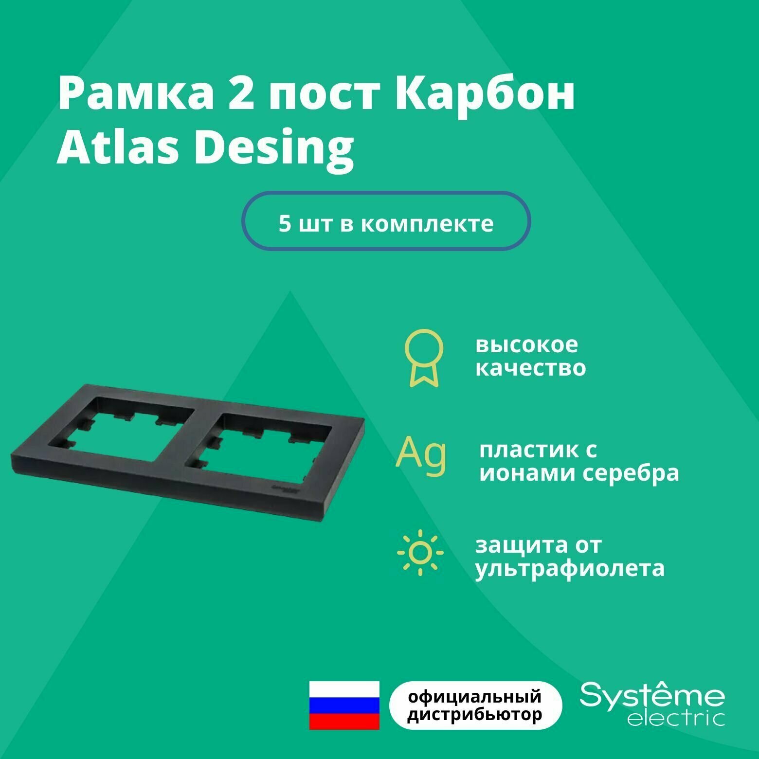 Розетки Рамка электроустановочная Schneider Electric AtlasDesign, 2 пост., карбон, ATN001002, 5 шт.