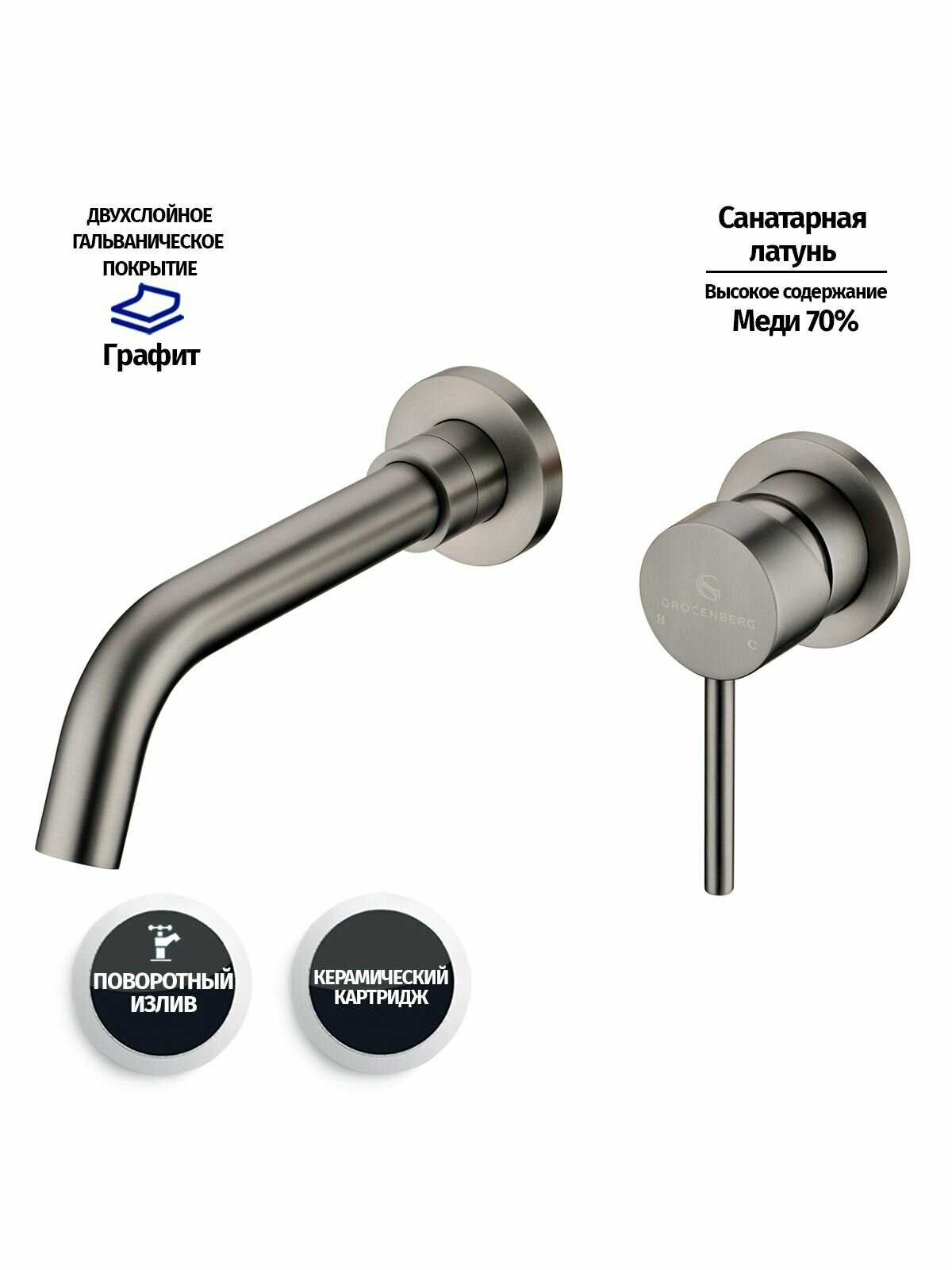 Смесители Смеситель для раковины встраиваемый из латуни "Grocenberg" (графит)