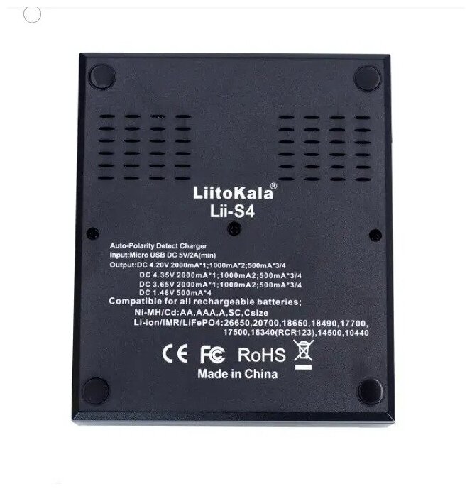 Зарядное устройство LiitoKala Lii-S4 для Li-ion, Li-FePO4, Ni-Mh и Ni-Cd аккумуляторов (14500, 16340, 18500, 18650, 26650, 20700, AA, AAA) , 1шт.
