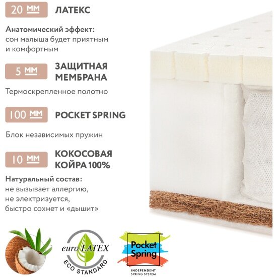 | Наполнитель | пенополиуретан, латексированная кокосовая койра, лен |