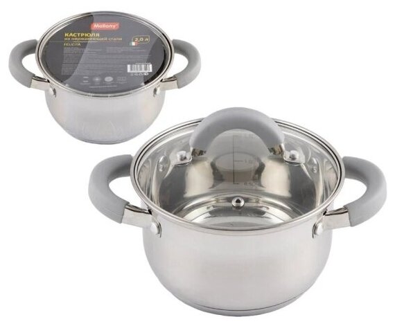 Кастрюля из нержавеющей стали с крышкой Mallony Felicita, 2 л, подходит для индукционной плиты 994 ₽ Подробнее