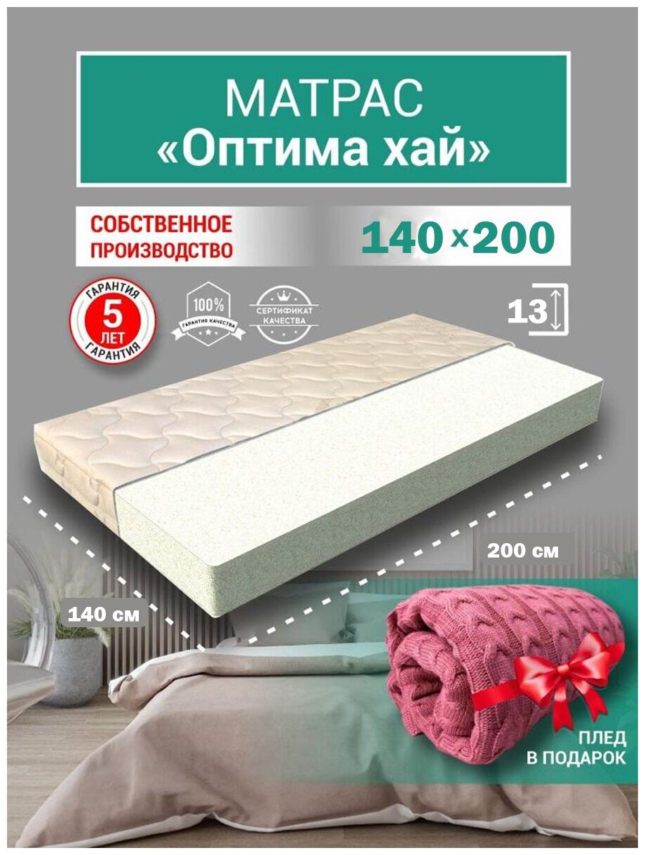 Матрас Оптима Хай, Беспружинный, 160х200 см ортопедический 160 на 200 высота 13 см, 160 х 200 х 13, чехол комплекте, плед в комплекте 11 280 ₽ Подробнее