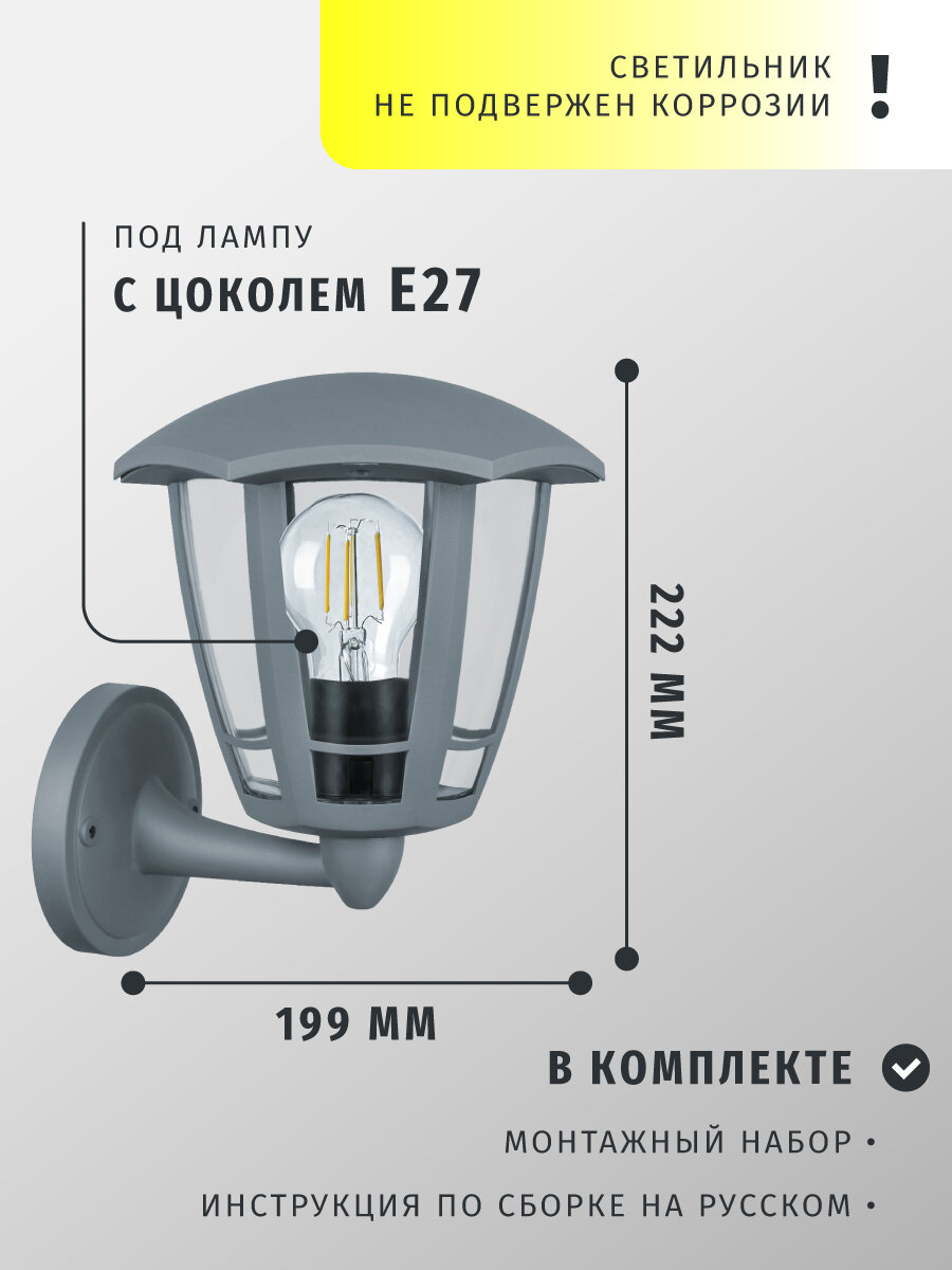 Светильник садовый парковый фонарь для уличного освещения фасада здания дома дачи участка настенный пластик IP44 E27 Для декоративного оформления территорий кафе ресторанов коттеджей зон отдыха.