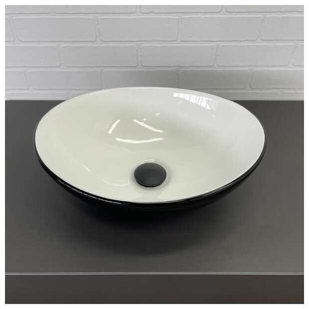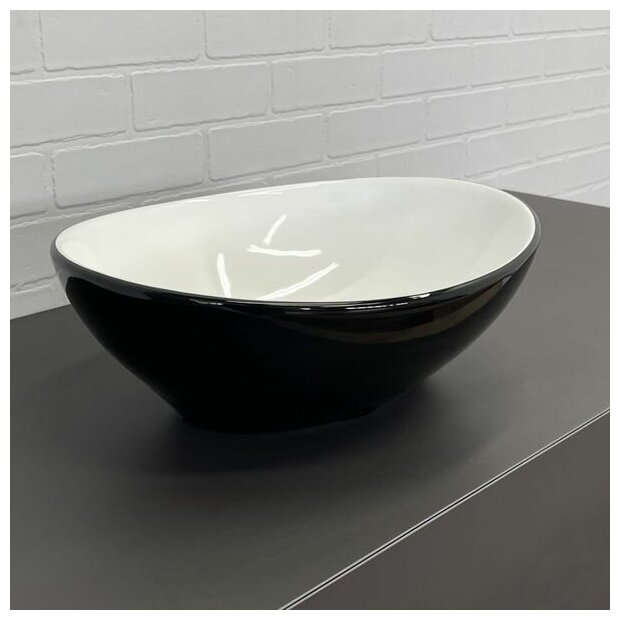Умывальник Раковина COMFORTY 7138BW 40см, черно-белая, овальная, накладная, фарфор, без смесителя и перелива