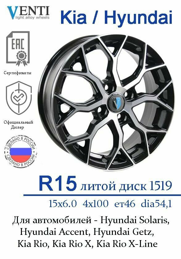 Диски Колесный диск VENTI 1519 V 15x6" PCD4x100 ET46 D54.1